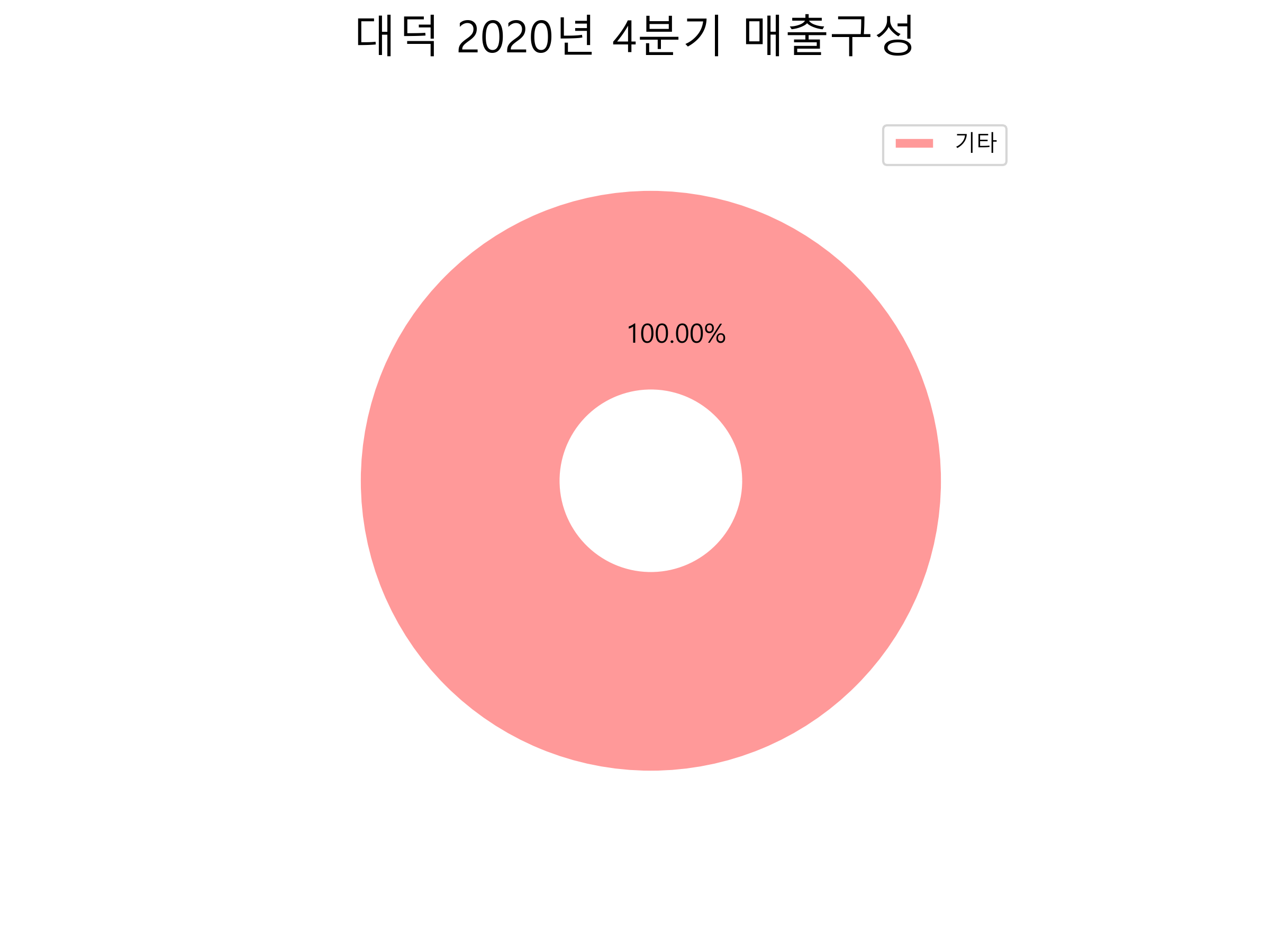 대덕의 2020년 4분기 매출은 9억원, 영업손실 -25억원, 당기순이익 106억원을 기록했습니다. 대덕의 분기별 매출 및 영업이익, 당기순이익 표입니다.