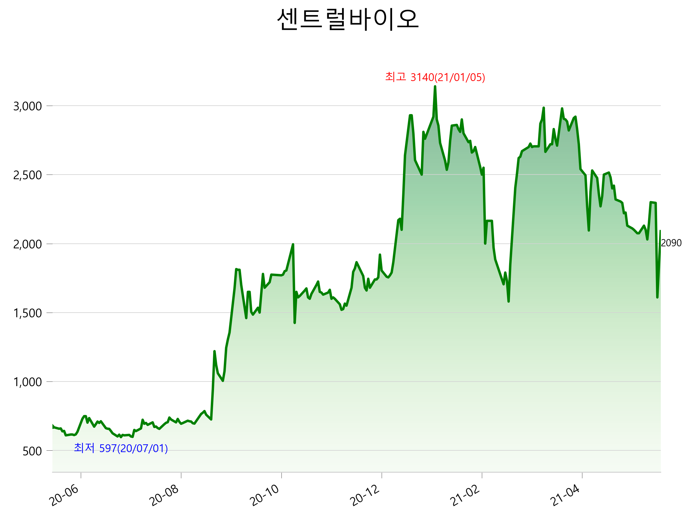 센트럴바이오(051980)의 5월 20일 주가가 급등했습니다. 센트럴바이오에 대해 어떠한 기업이며, 주가가 급등한 이유에 대해서 알려드리겠습니다.