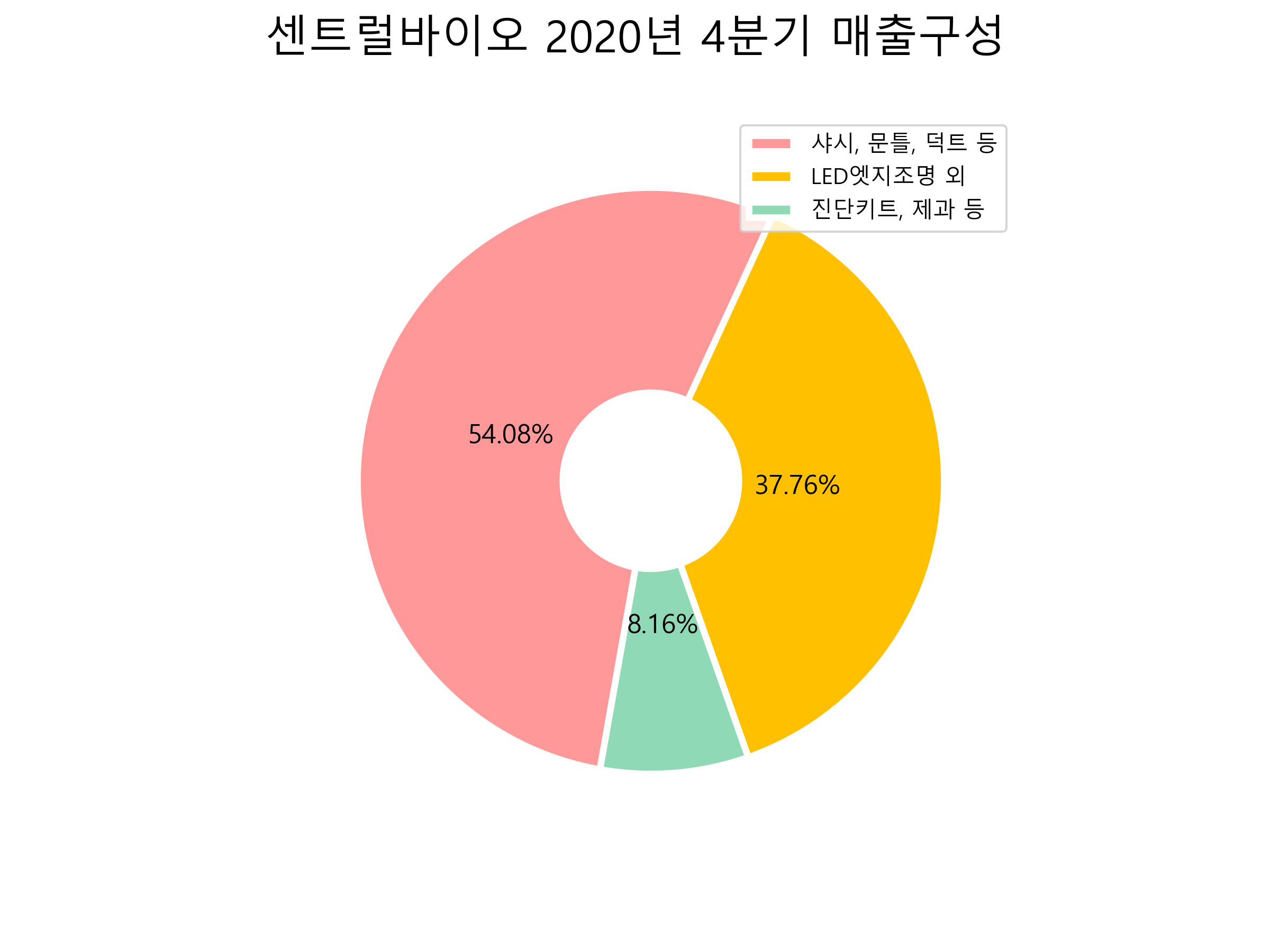센트럴바이오의 2020년 4분기 매출구성입니다.