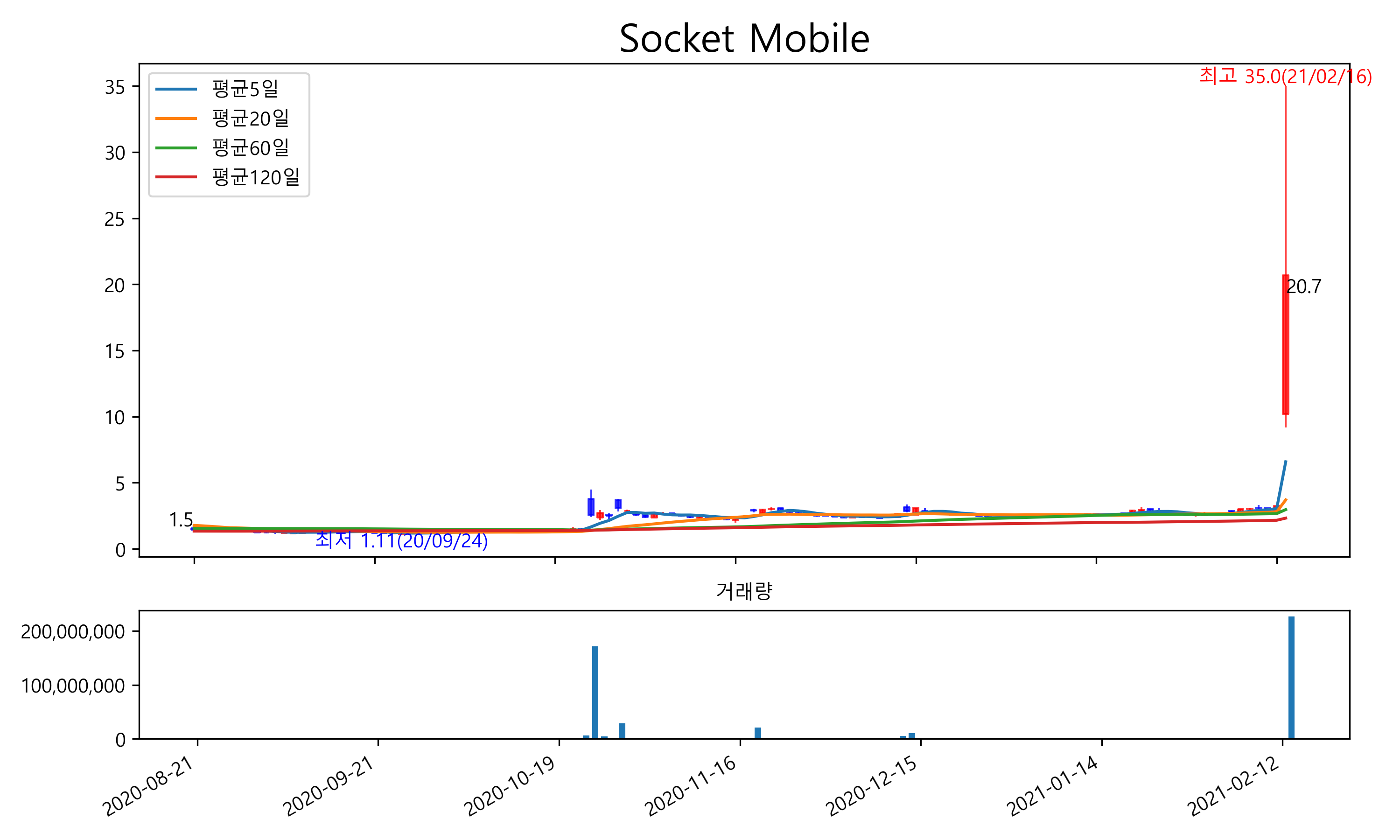 소켓 모바일이 2월 16일 하루동안 주가가 최고 장중 980%까지 상승했습니다. 주가 및 실적, 재무구조에 대해서 다각도로 분석해 보겠습니다.