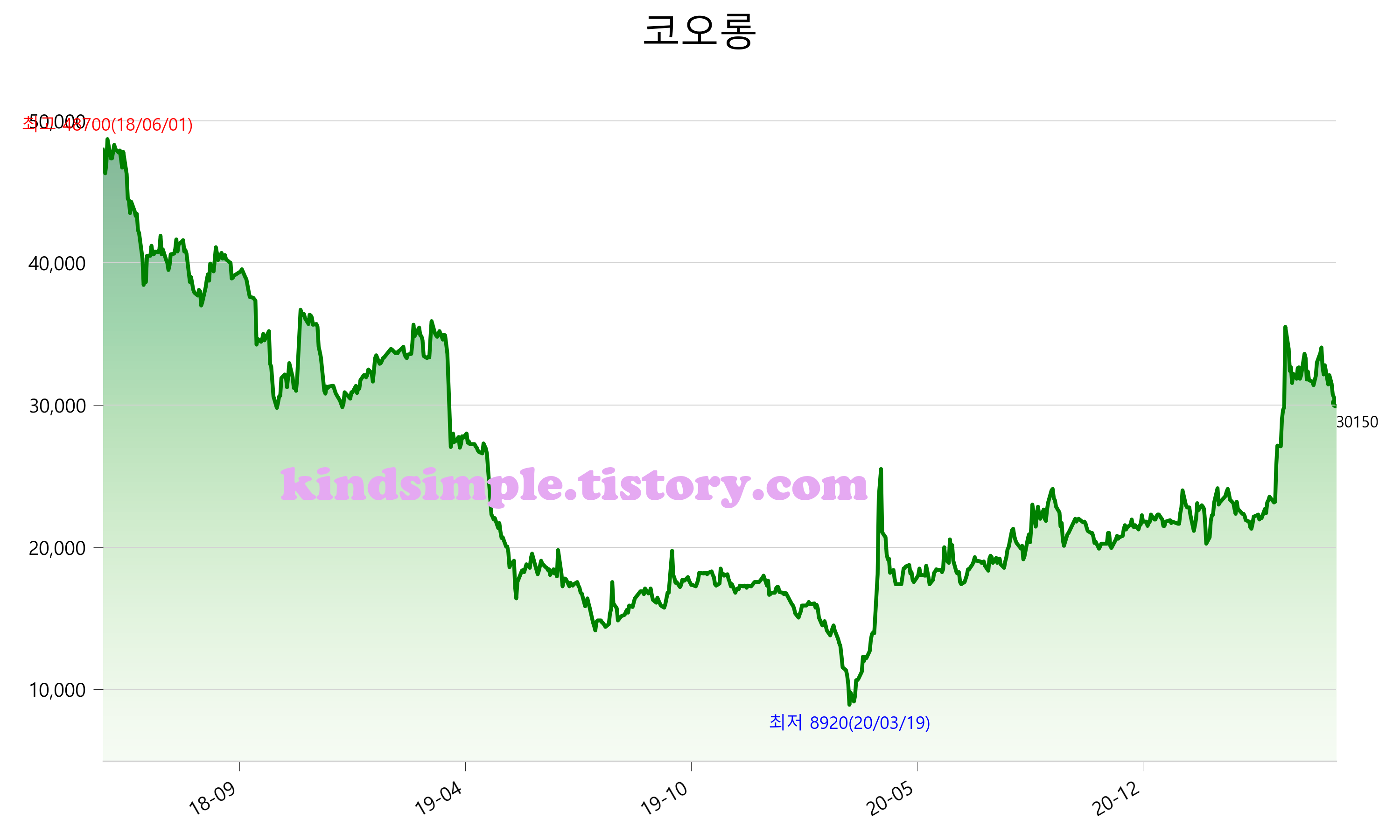 5월 24일 기준 주가는 30,150원 입니다. 아래는 최근 3년간의 주가흐름입니다.