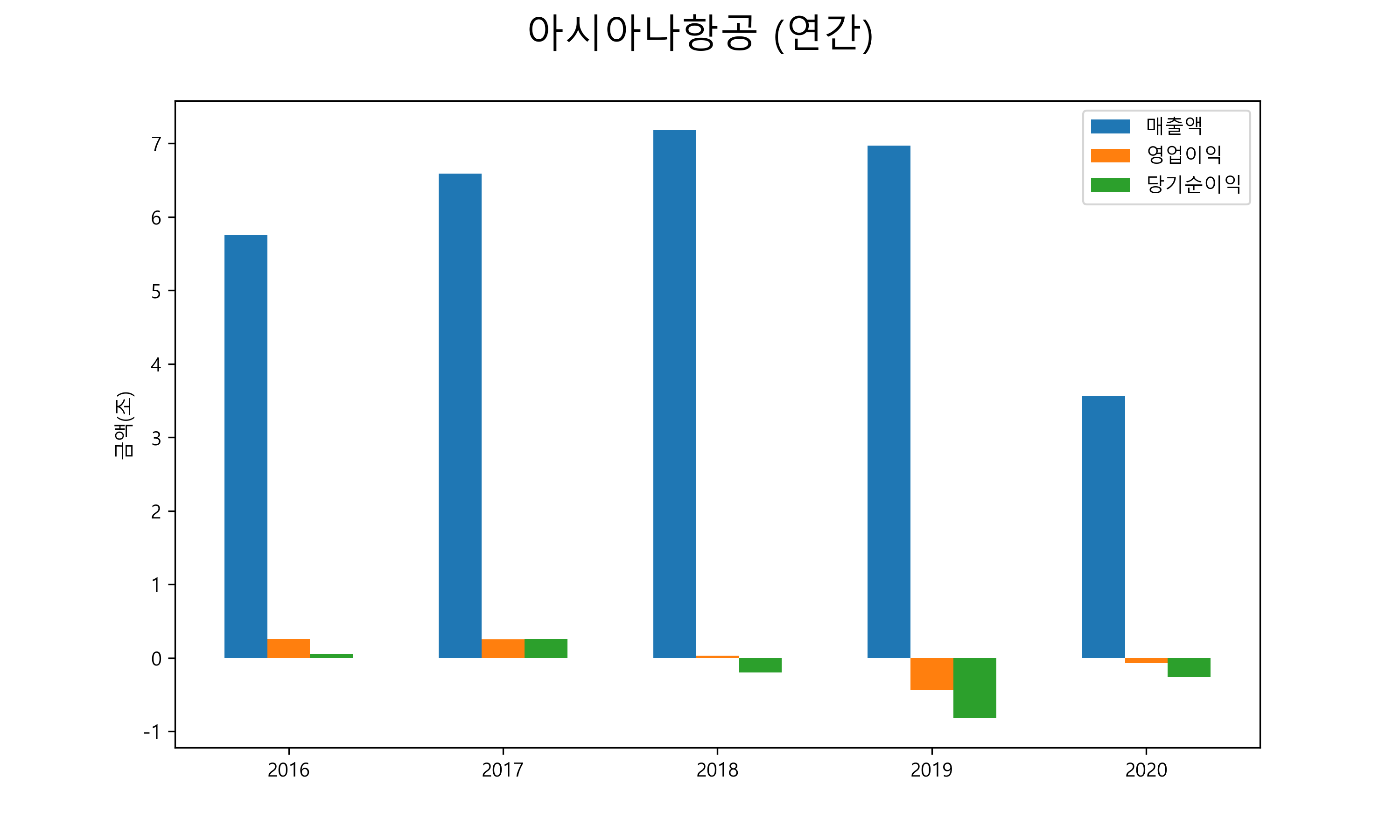 아시아나항공의 연간 실적