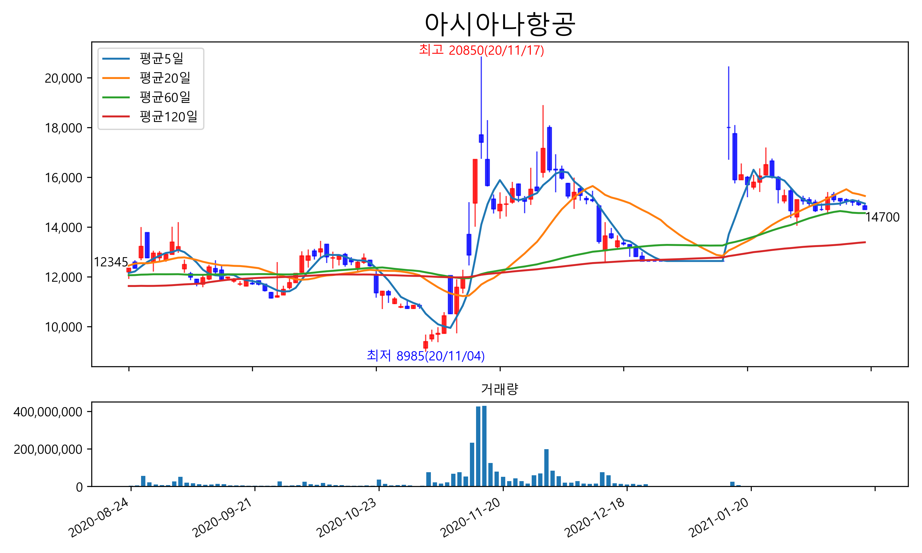 최근 6개월간 캔들차트 및 이동평균선입니다.