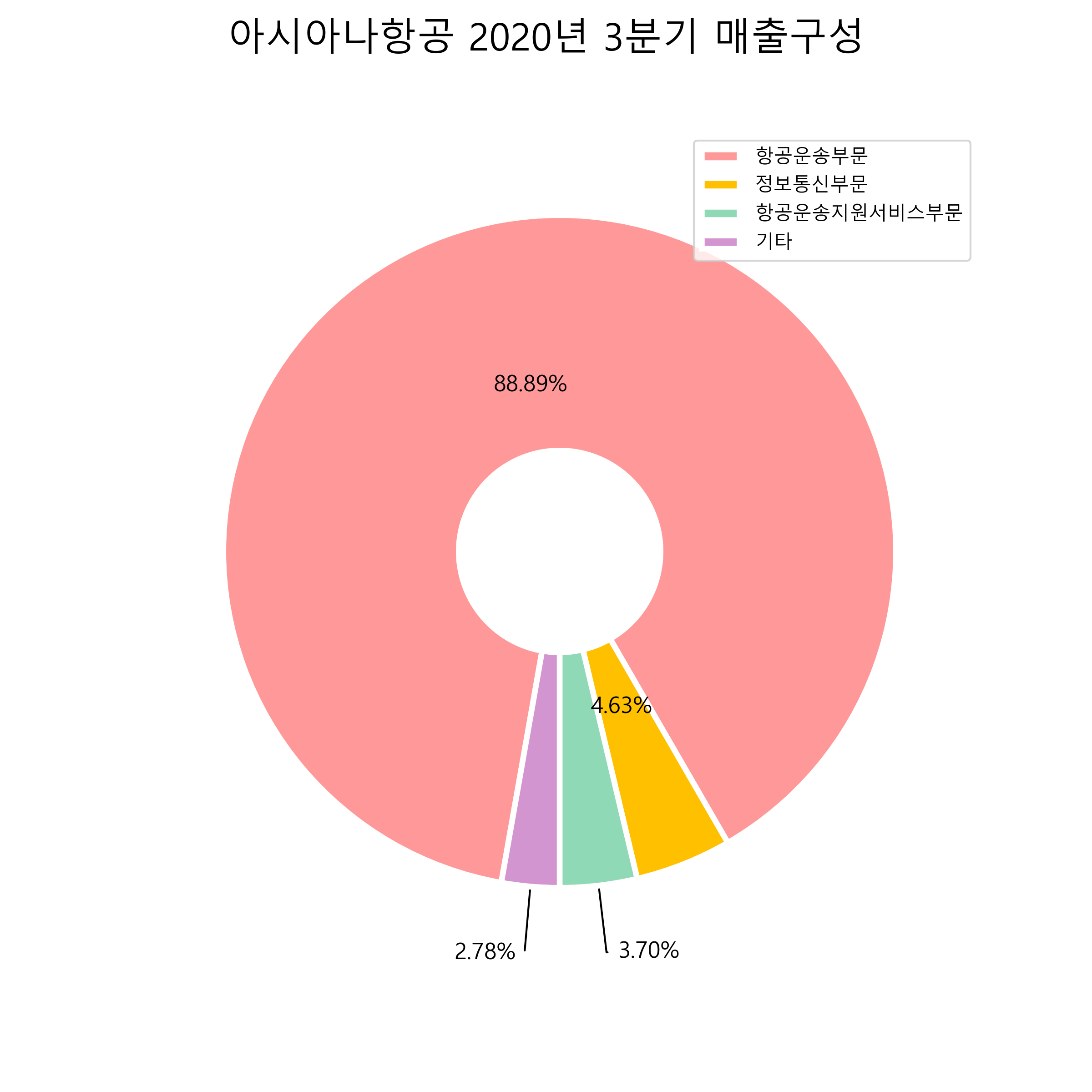 아시아나항공의 2020년 3분기 매출구성입니다.