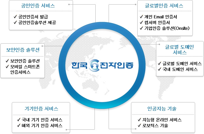 - 1999년 3월 17일 설립, 전자인증서(기업&개인), 글로벌SSL인증, 생체인증, IoT인증 등 보안솔루션을 주요사업으로 제공.