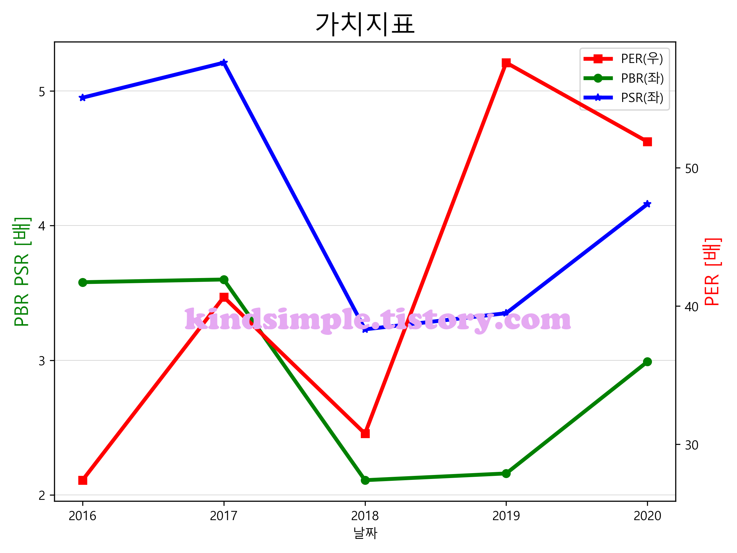 - PER : 84.78배, 동일업종 PER : 29.35배