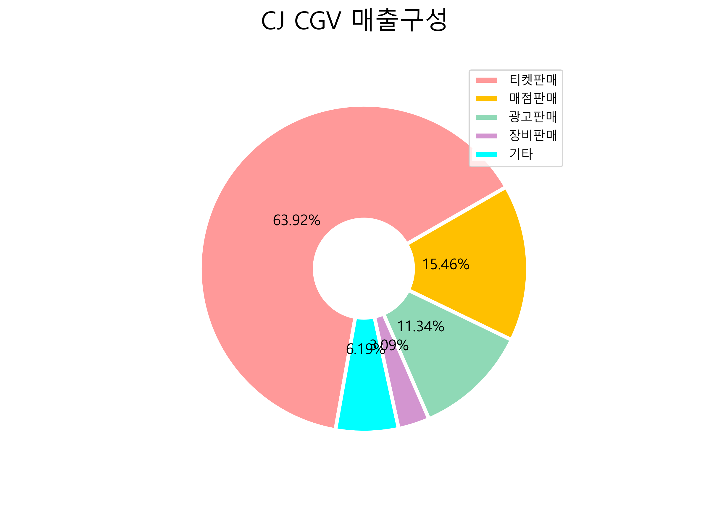 - 영화 상영업계에서 시장점유율 1위의 타이틀을 유지하고 있으며 ScreenX, 4DX 및 골드클래스, 씨네드쉐프, 템퍼시네마 등 프리미엄 상영관을 운영하고 있음.