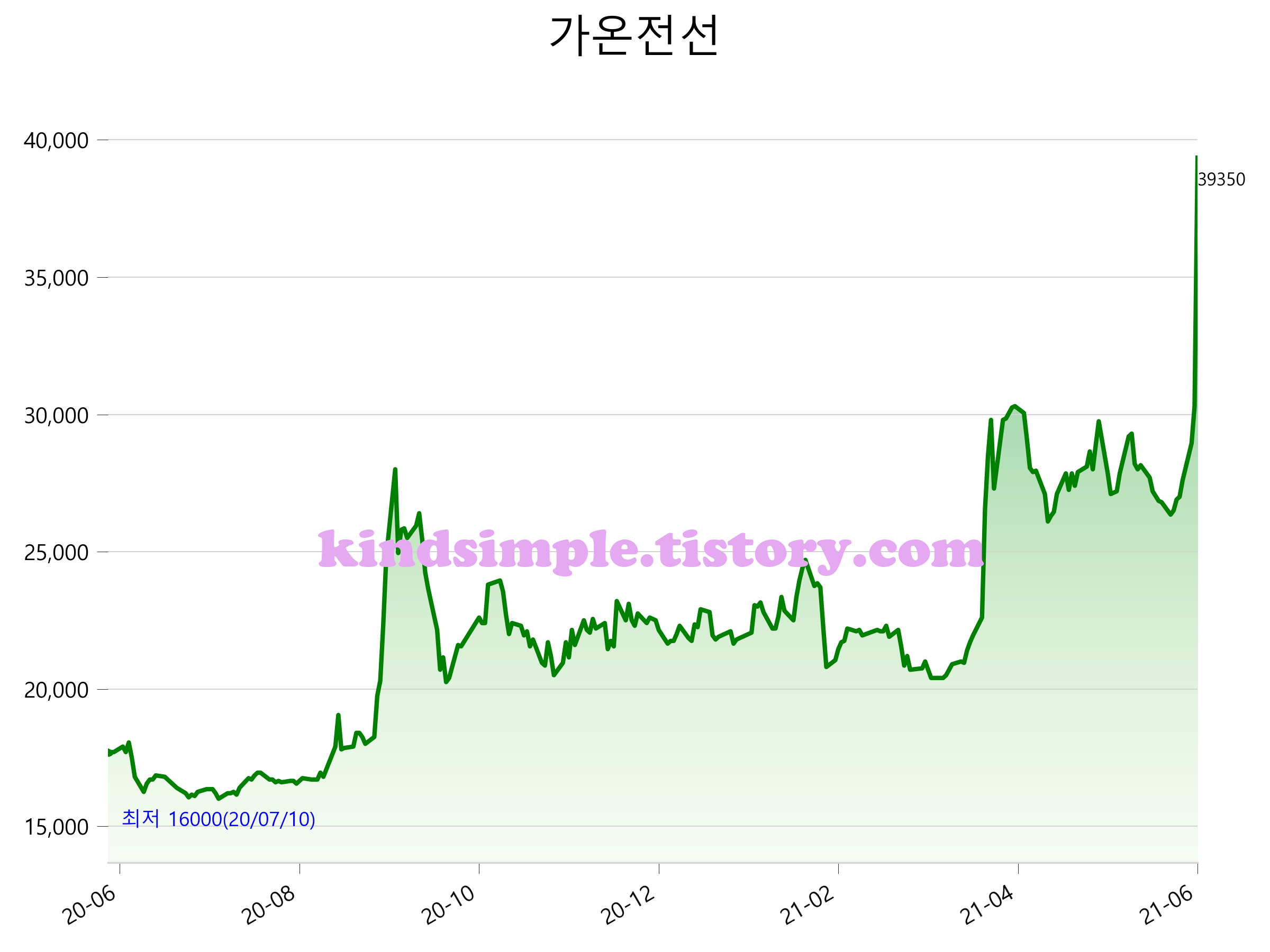 52주 최고가는 39,350원(2021-06-02), 52주 최저가는 16,000원(2020-07-10)으로 52주간 주가 상승률은 121.7% 입니다.