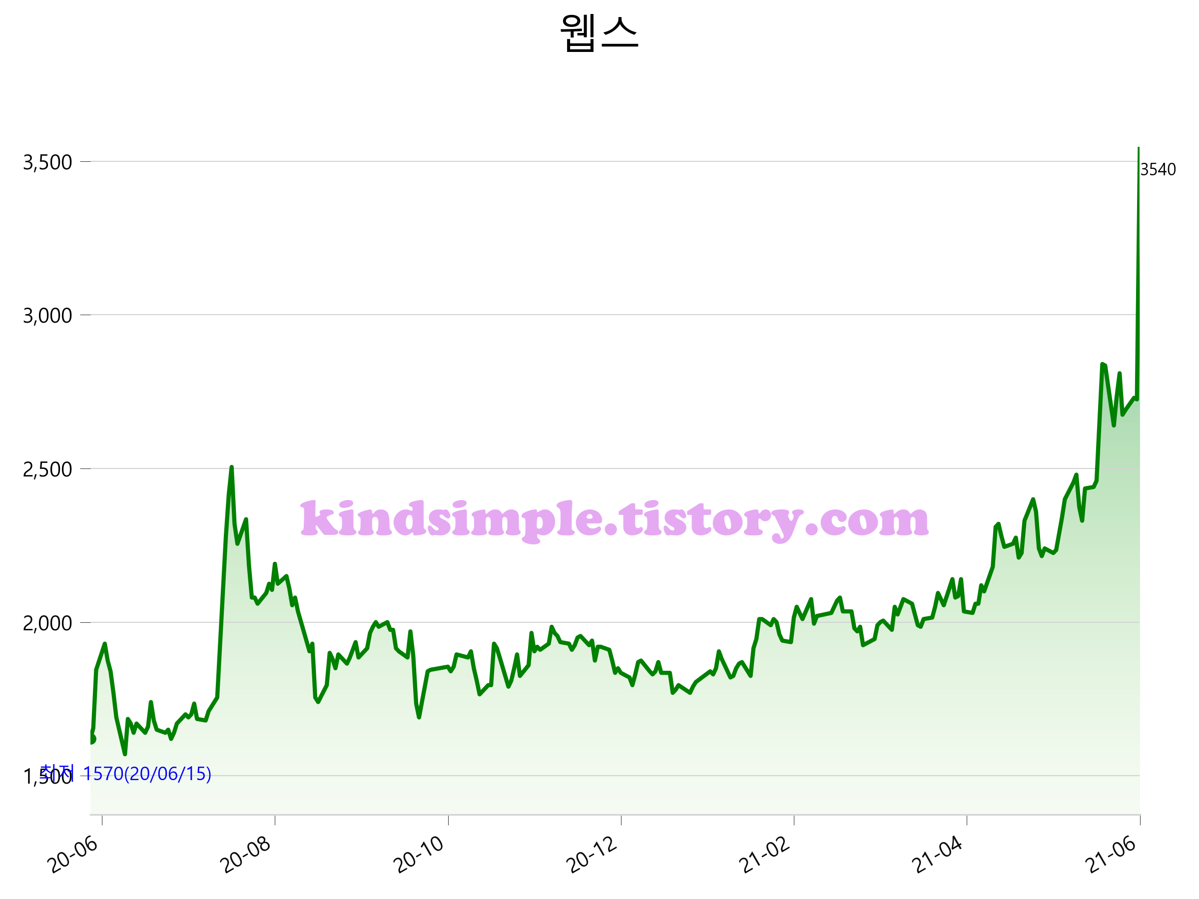 웹스(196700)의 6월 2일 주가가 급등했습니다. 웹스에 대해 어떠한 기업이며, 주가가 급등한 이유에 대해서 알려드리겠습니다.