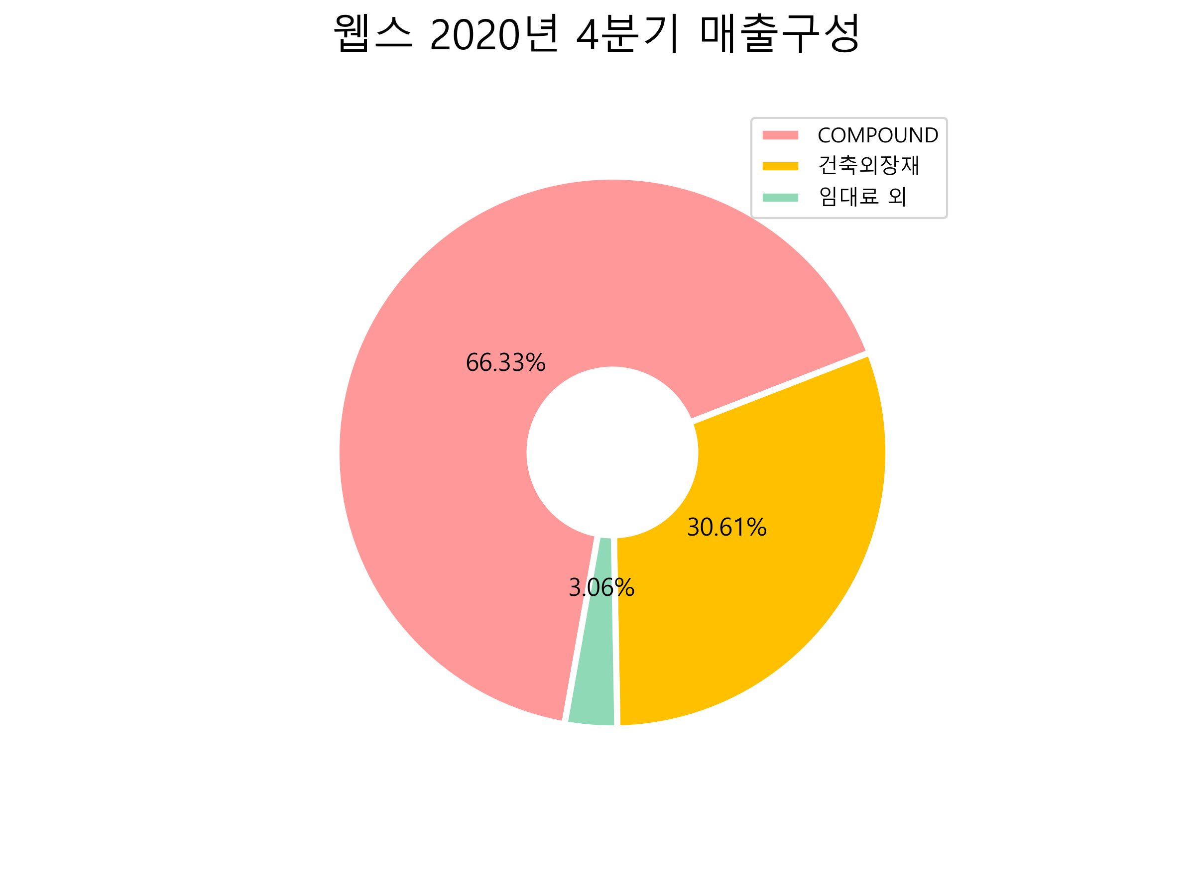 - 매출구성은 컴파운드 69.92%, 건축외장재 27.14%, 임대료 외 2.94%로 이루어져 있음.
