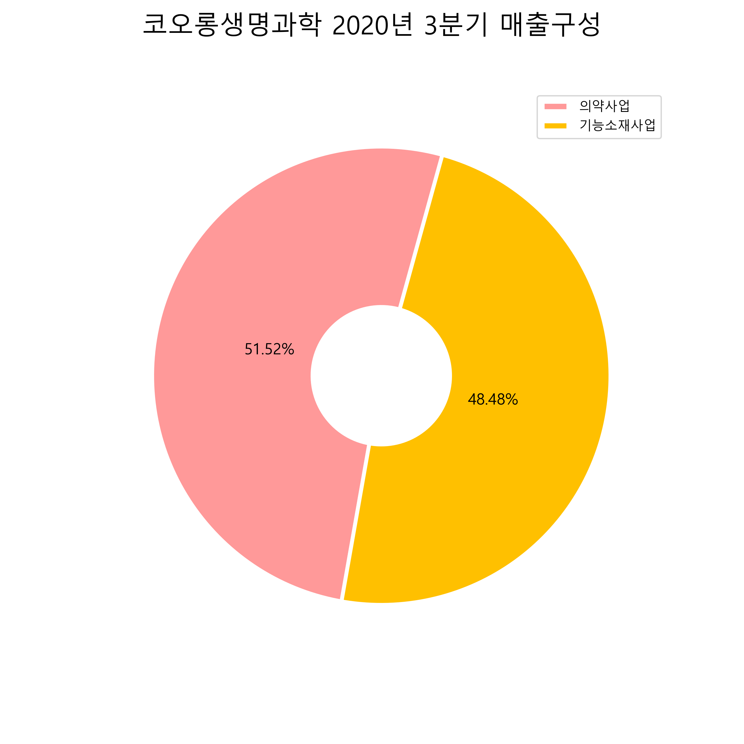 코오롱생명과학의 2020년 3분기 매출구성입니다.