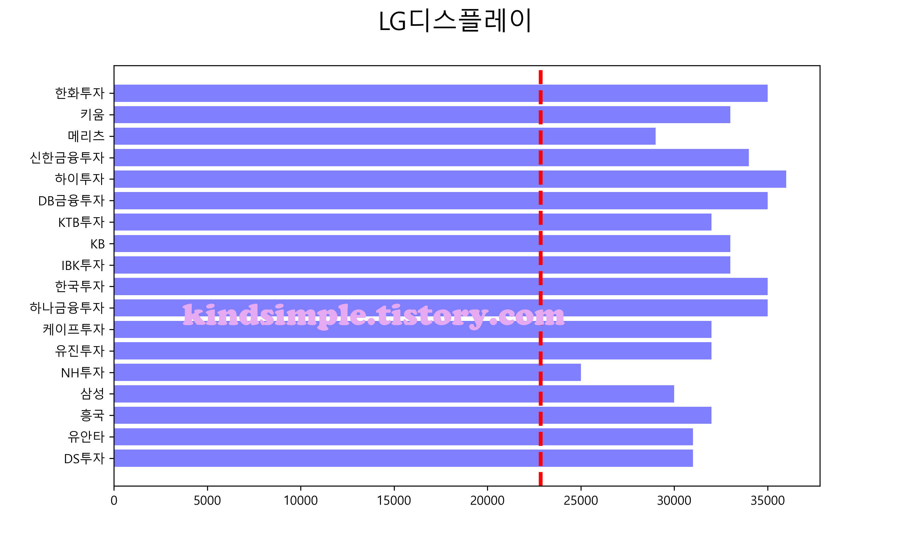 아래 그래프의 빨간색 점선이 현재 주가입니다.