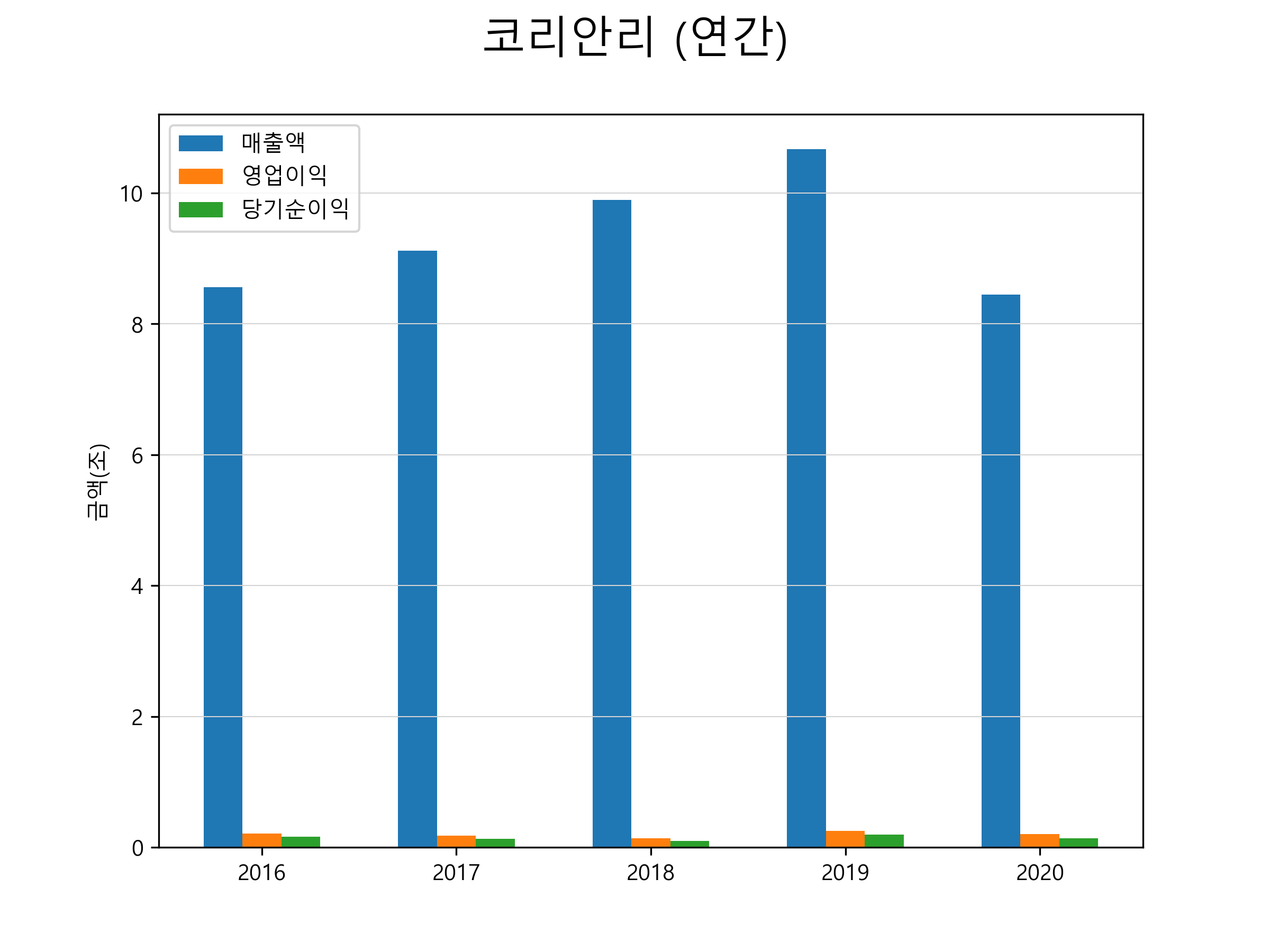 | 매출액 | 8조 5597억 | 9조 1168억 | 9조 8925억 | 10조 6699억 | 8조 4470억 |