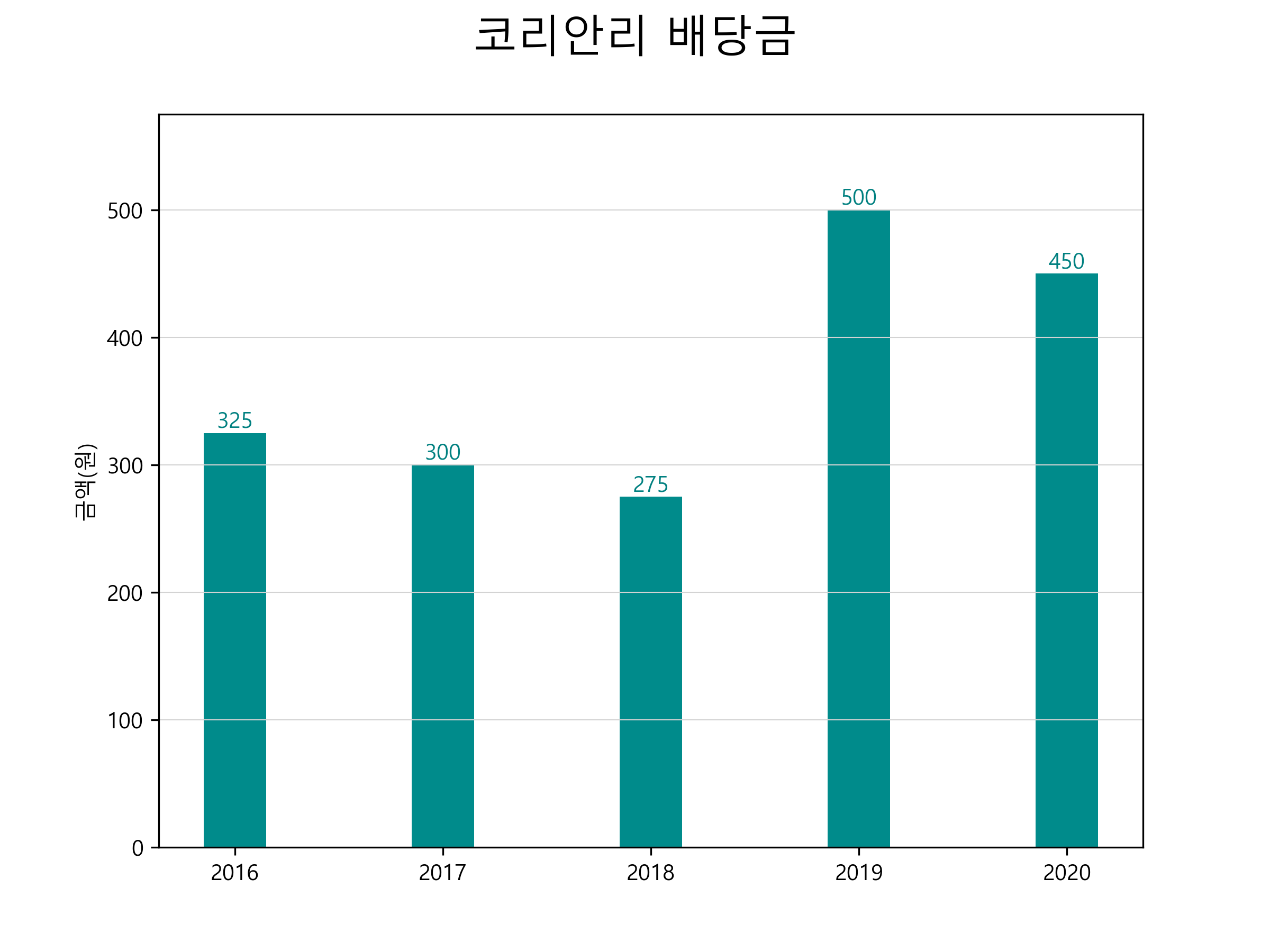 | 배당금 | 325 | 300 | 275 | 500 | 450 |