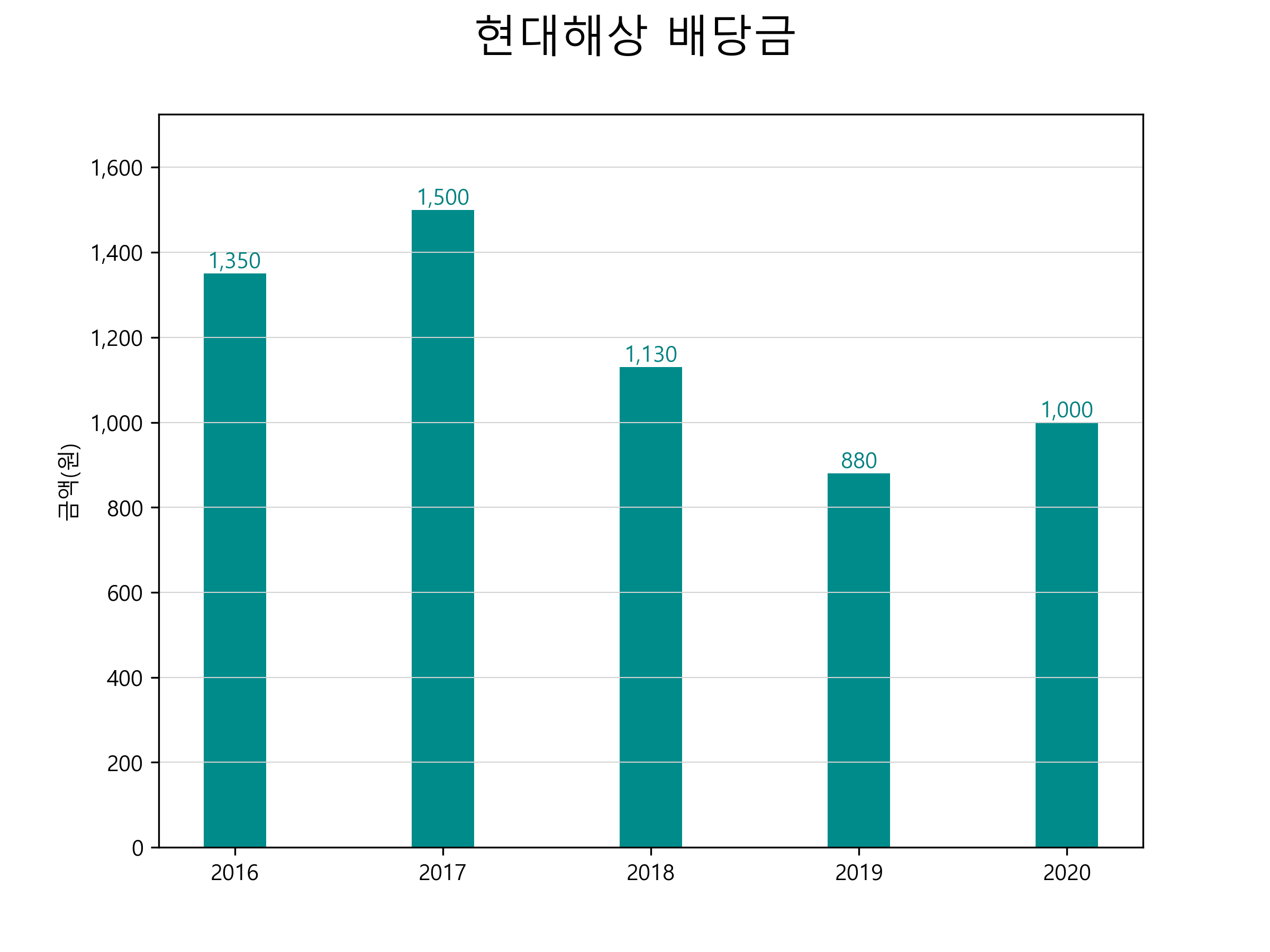 | 배당금 | 1,350 | 1,500 | 1,130 | 880 | 1,000 |