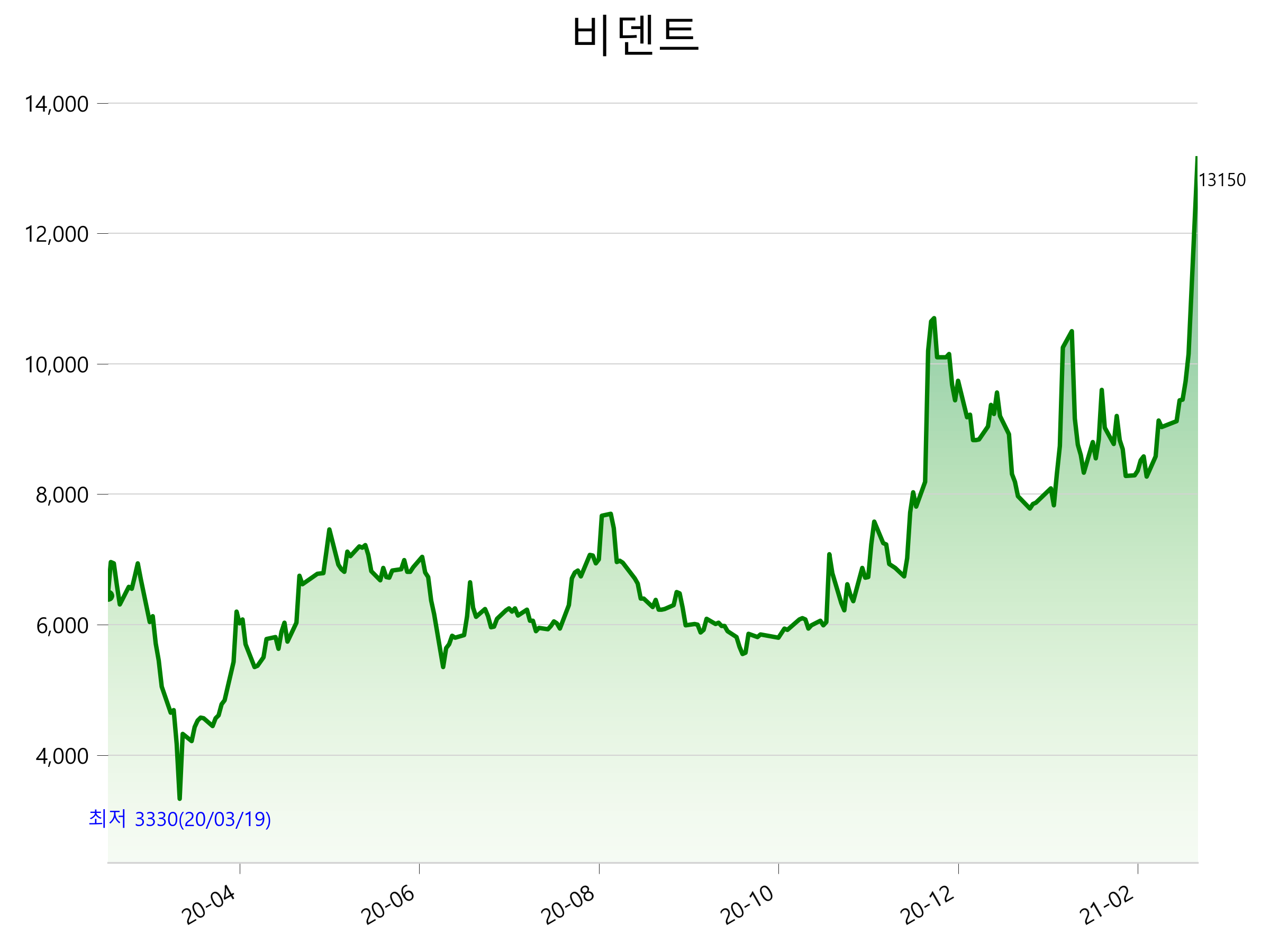 비덴트는 가상화폐 거래소 빗썸코리아의 직접 지분 10.3%, 빗썸코리아 최대주주 빗썸홀딩스의 지분 34.24% 보유한 현재 최대주주입니다. 암호화폐 가치 상승과 더불어 주가가 오를것이란 투자자들의 기대감이 반영된 것으로 보여집니다.