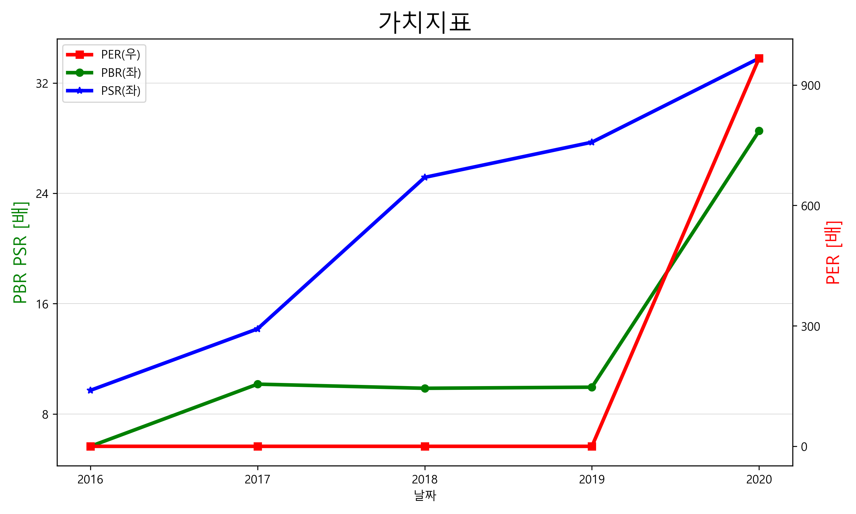테슬라의 PER, PBR, PSR 그래프입니다.