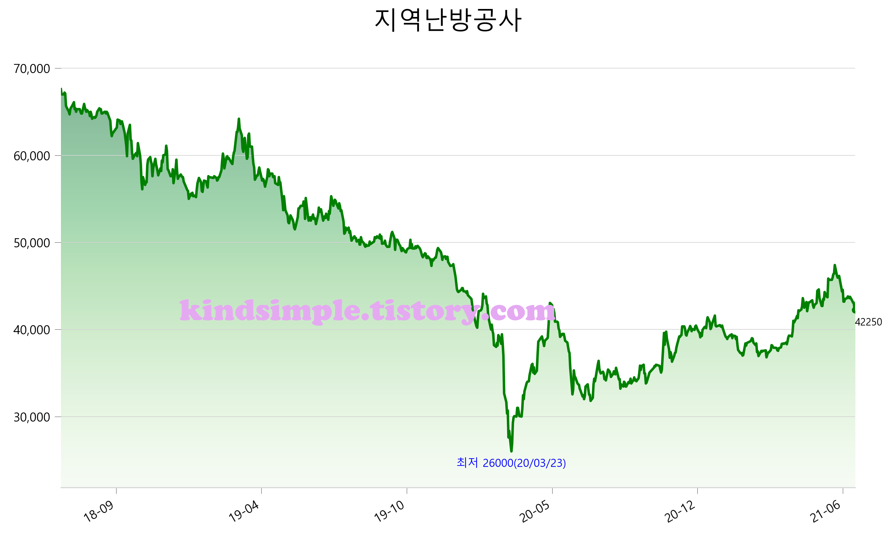 7월 10일 기준 주가는 42,250원 입니다. 아래는 최근 3년간의 주가흐름입니다.