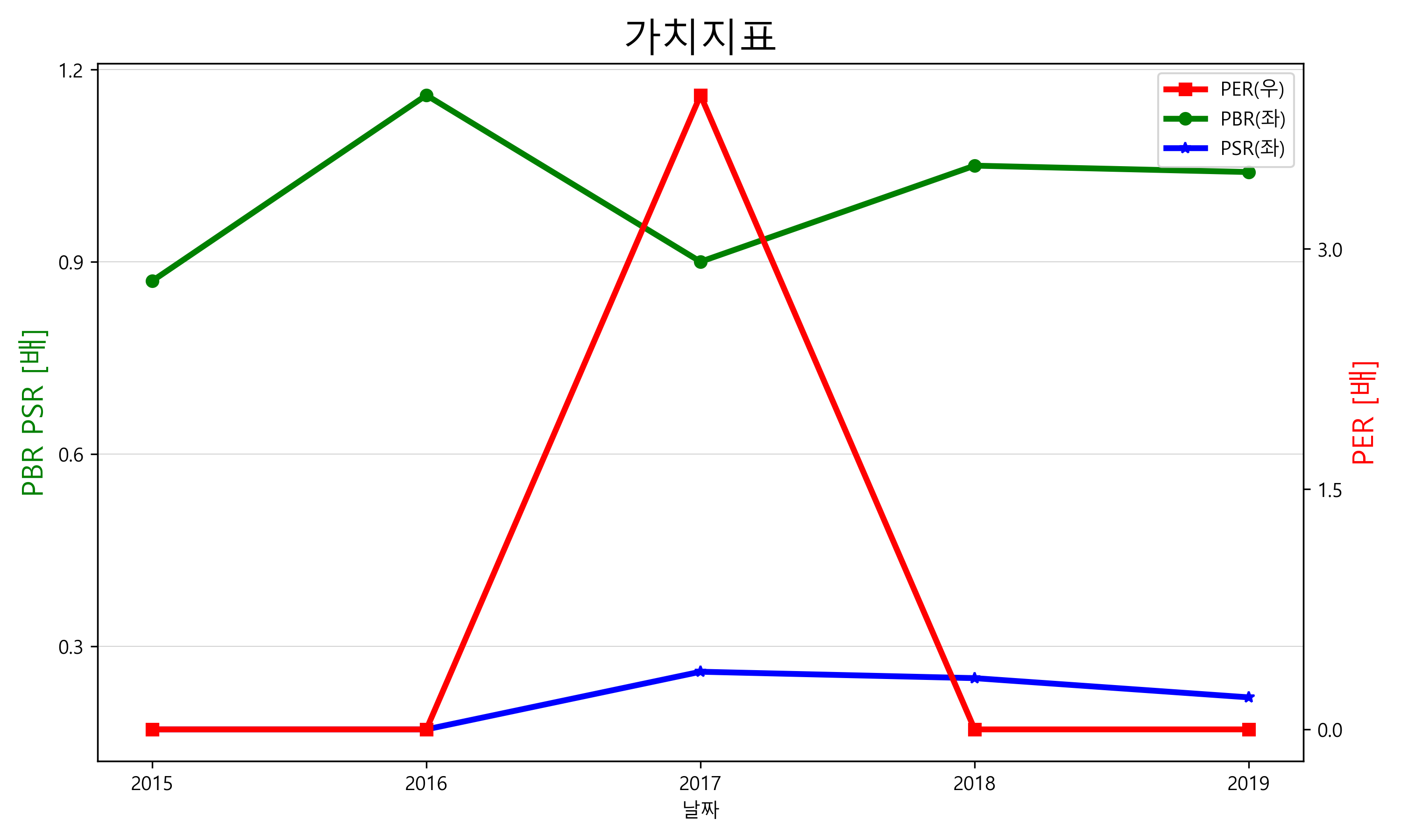 대한항공의 PER, PBR, PSR입니다.
