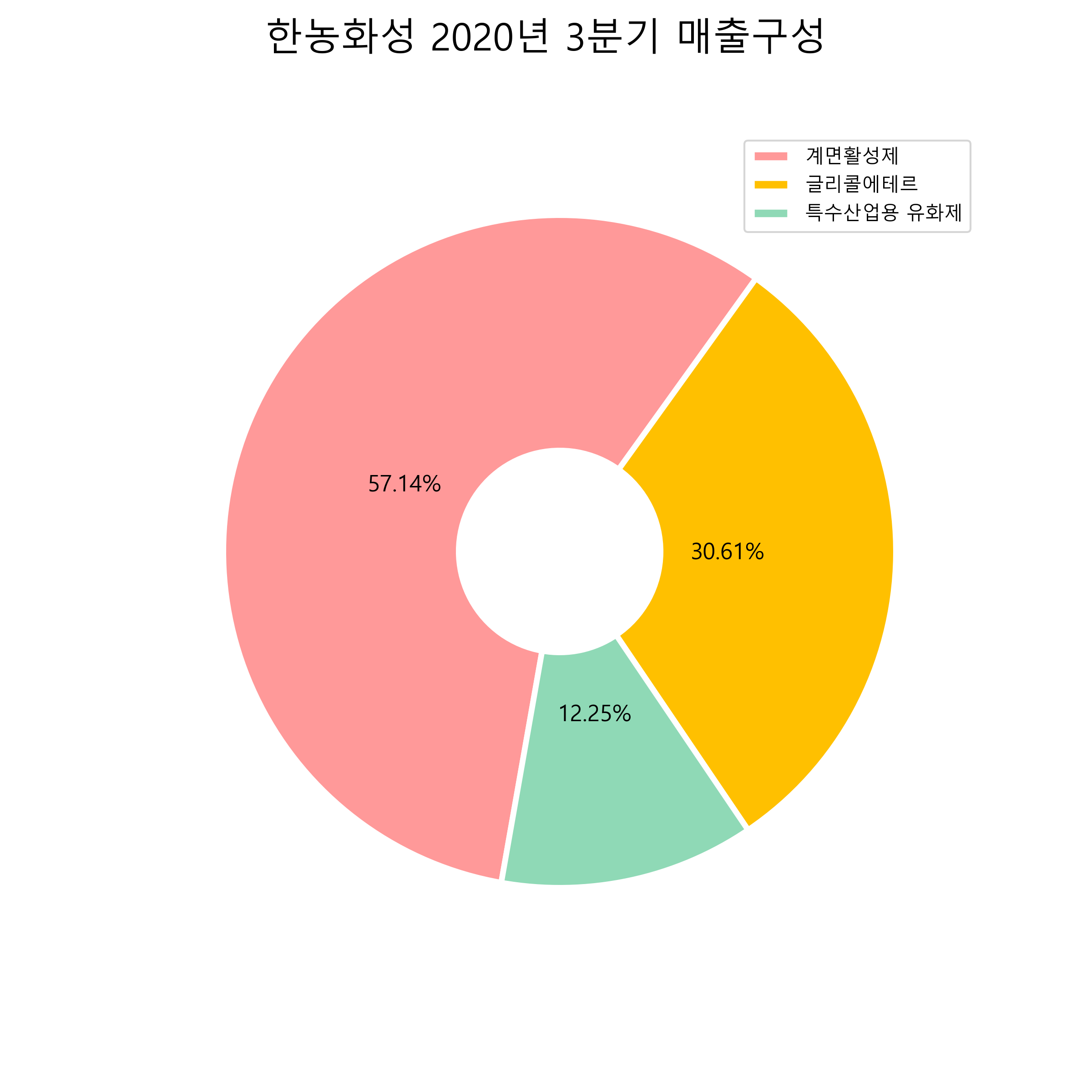 한농화성의 2020년 3분기 매출구성입니다.