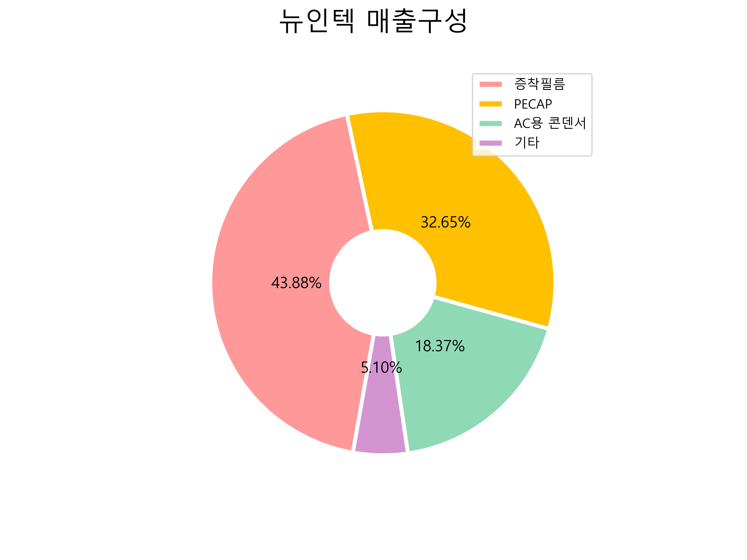 - 증착필름(콘덴서의 원재료) 및 기기용콘덴서(냉장고, 세탁기, 에어컨등 백색가전용 부품)와 신재생에너지용 콘덴서(친환경자동차, 태양광발선소용)등을 생산, 판매하고 있음.
