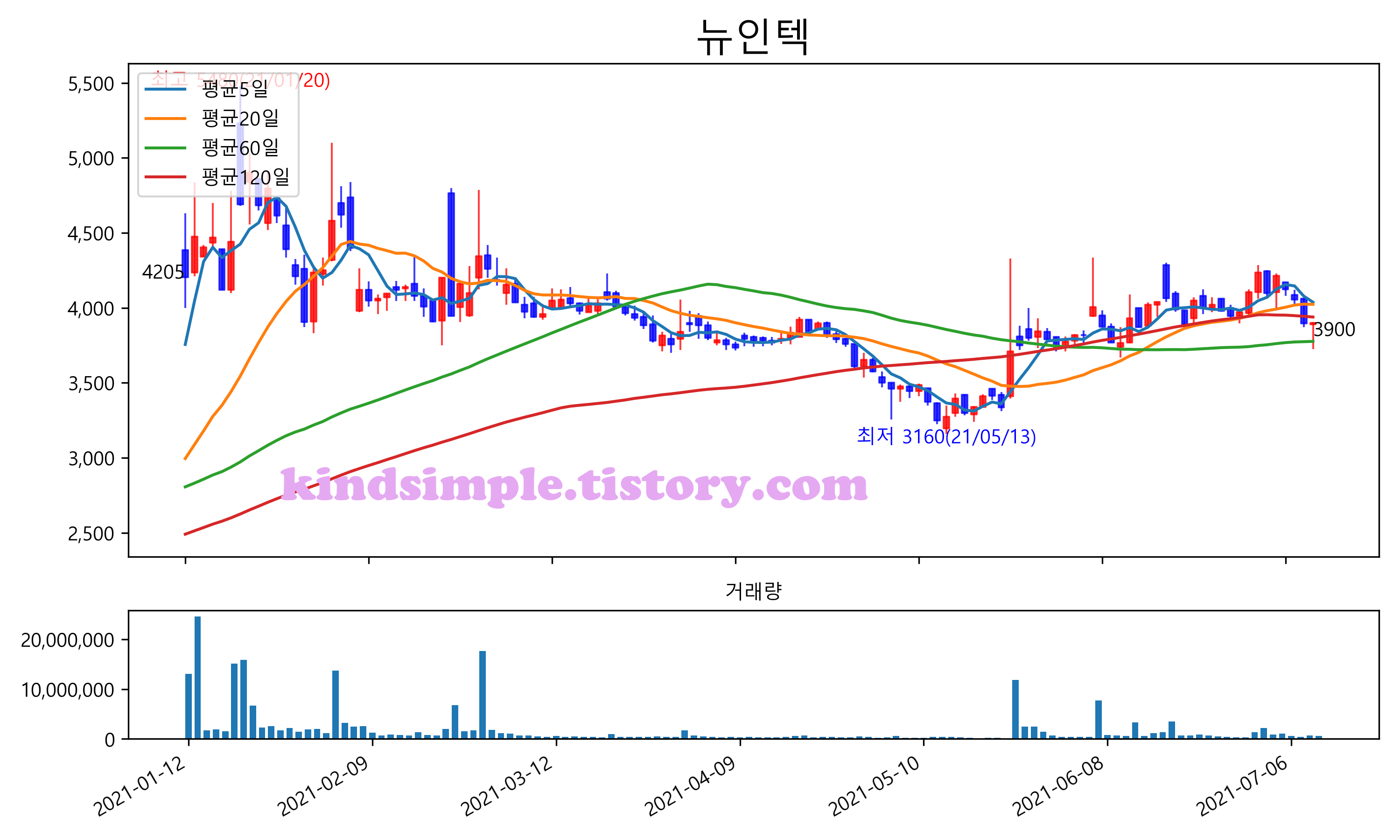 7월 11일 기준 주가는 3,900원 입니다. 아래는 최근 3년간의 주가흐름입니다.