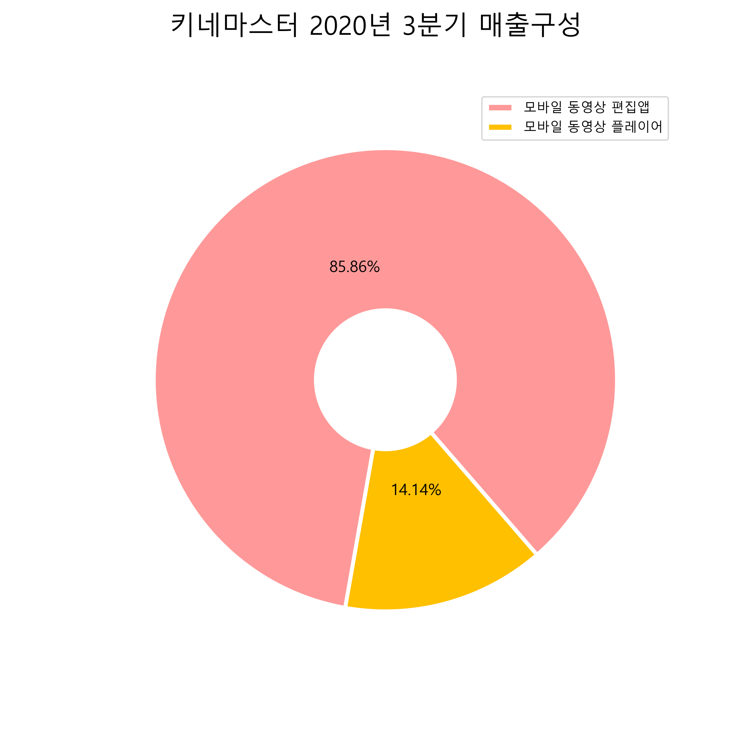 키네마스터의 2020년 3분기 매출은 87억원, 영업이익 20억원, 당기순이익 14억원을 기록했습니다. 키네마스터의 분기별 매출 및 영업이익, 당기순이익 표입니다.