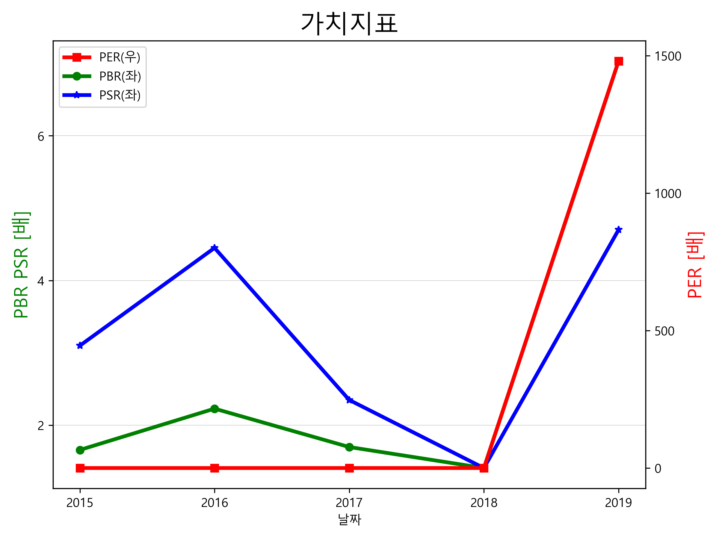 - PER : 179.27배, 동일업종 PER : 85.70배