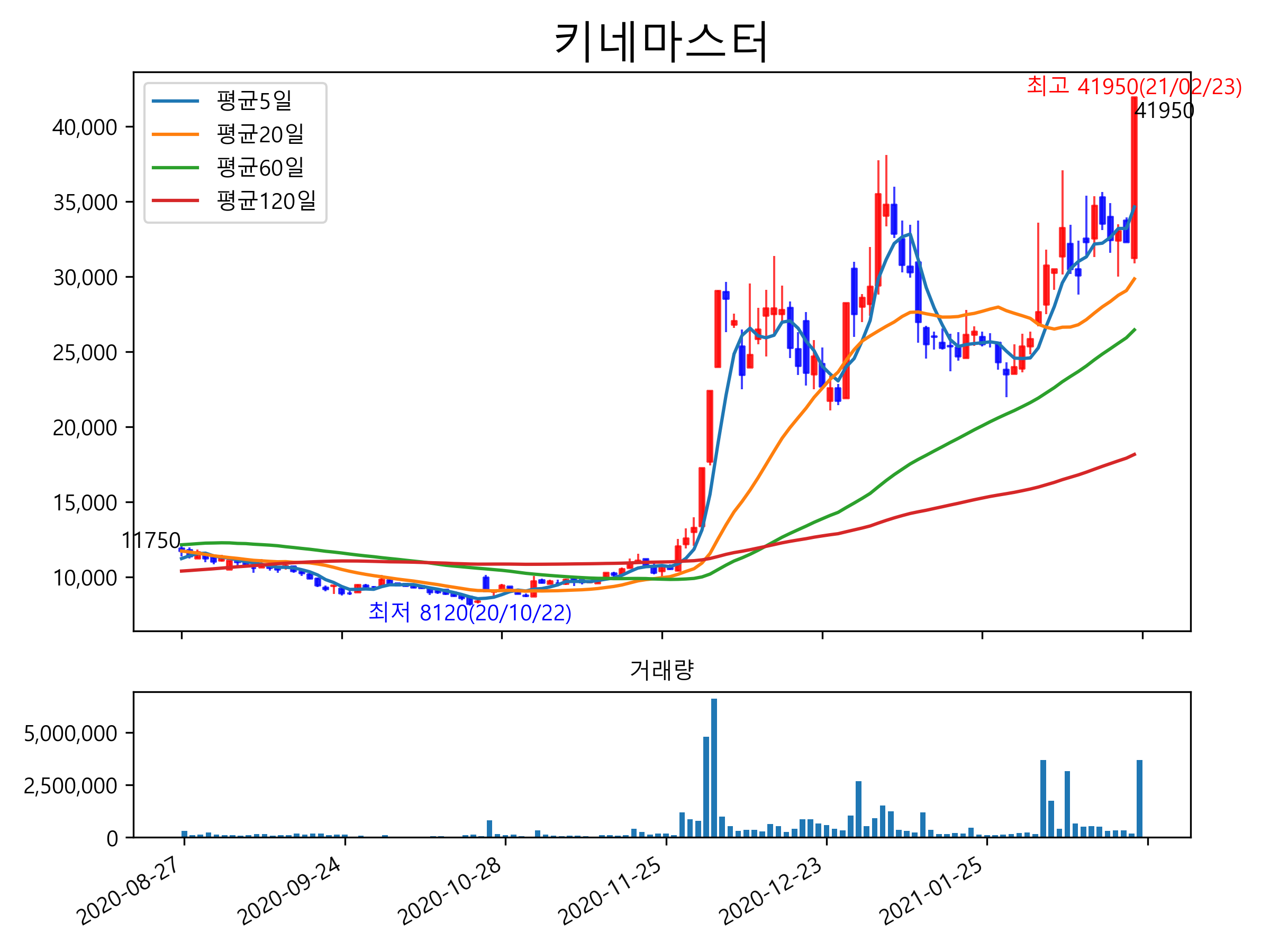 최근 6개월간 캔들차트 및 이동평균선입니다.