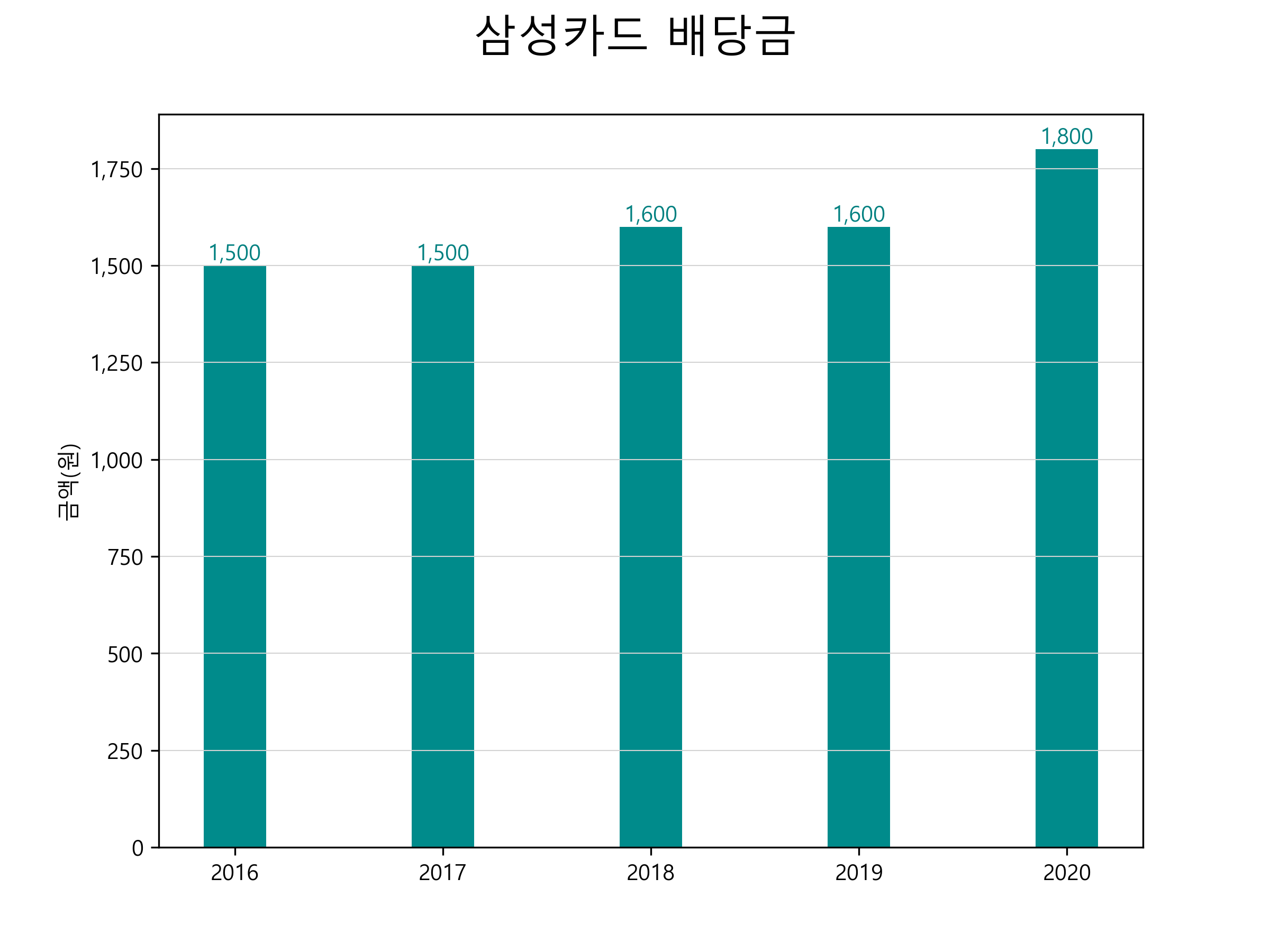 | 배당금 | 1,500 | 1,500 | 1,600 | 1,600 | 1,800 |