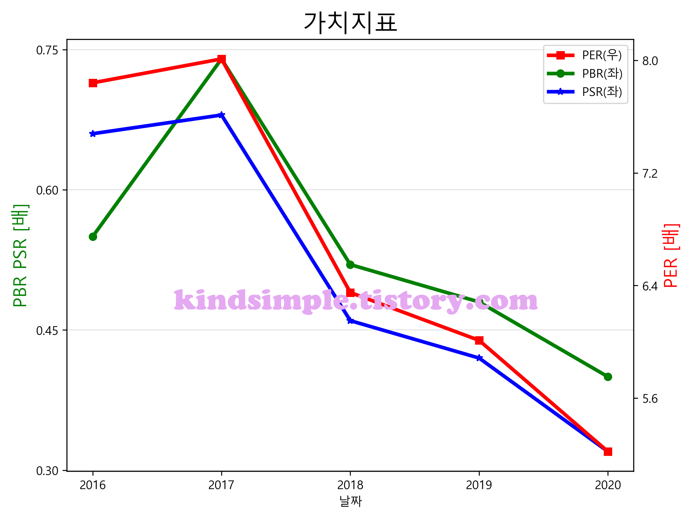 KB금융의 PER, PBR, PSR입니다.