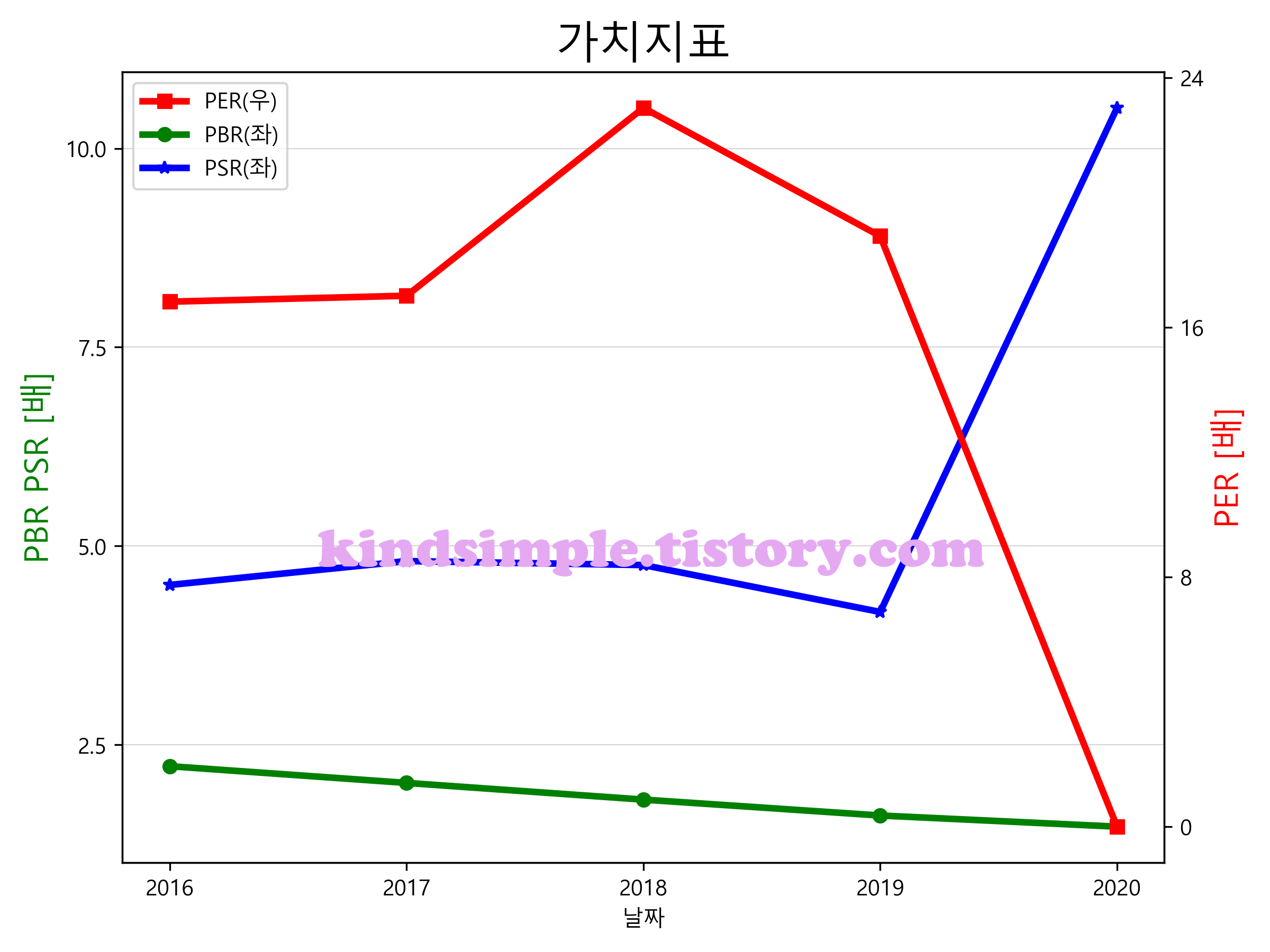 강원랜드의 PER, PBR, PSR입니다.