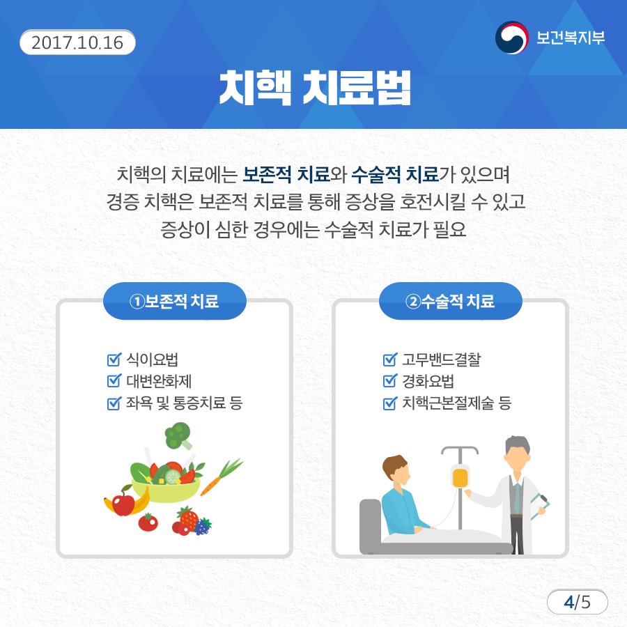 치핵은 1기부터 4기로 구분합니다.
